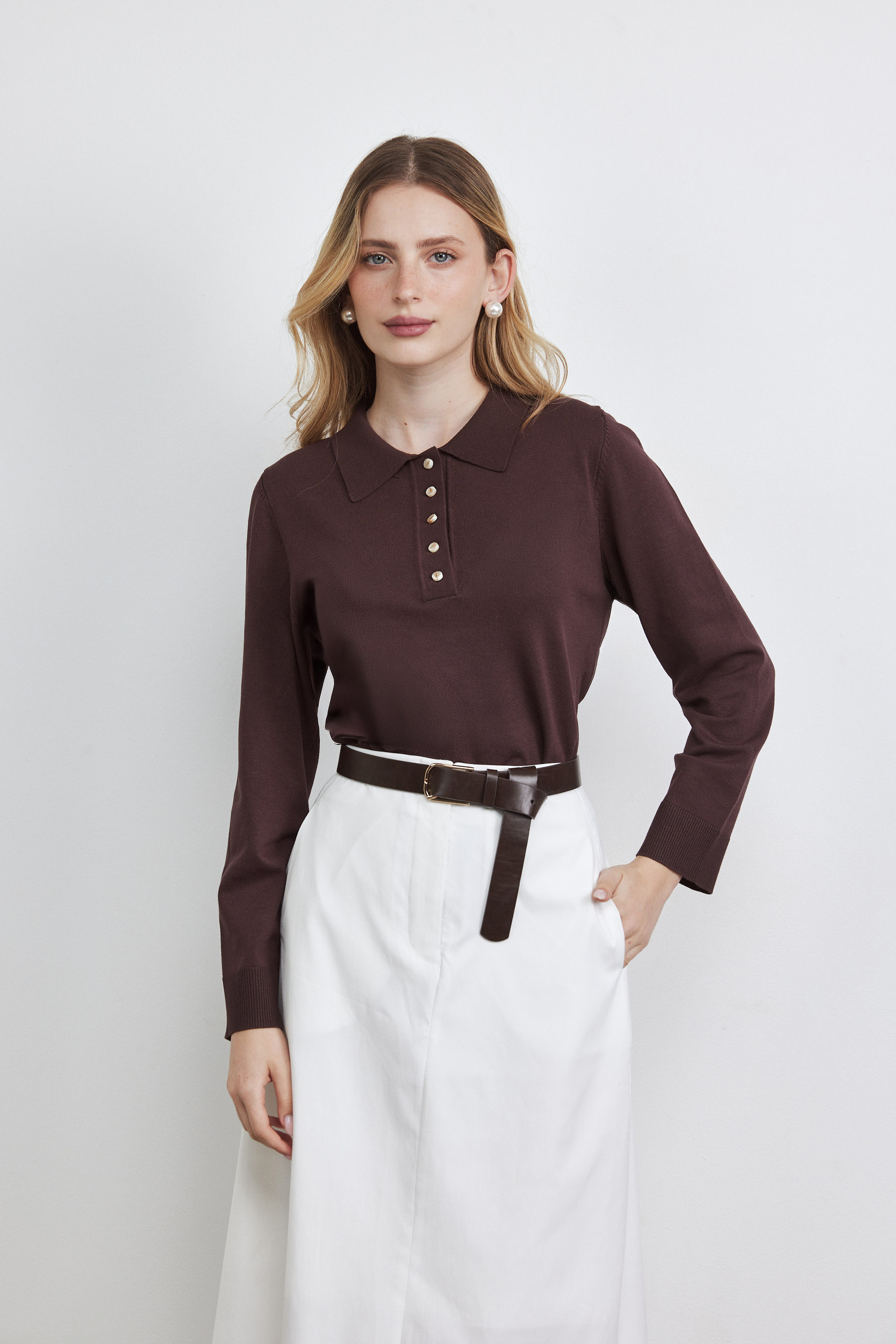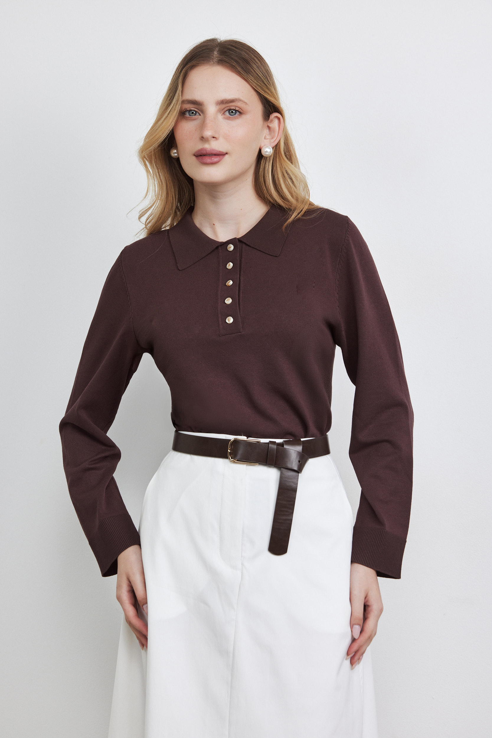 חולצה פולו סריג חום