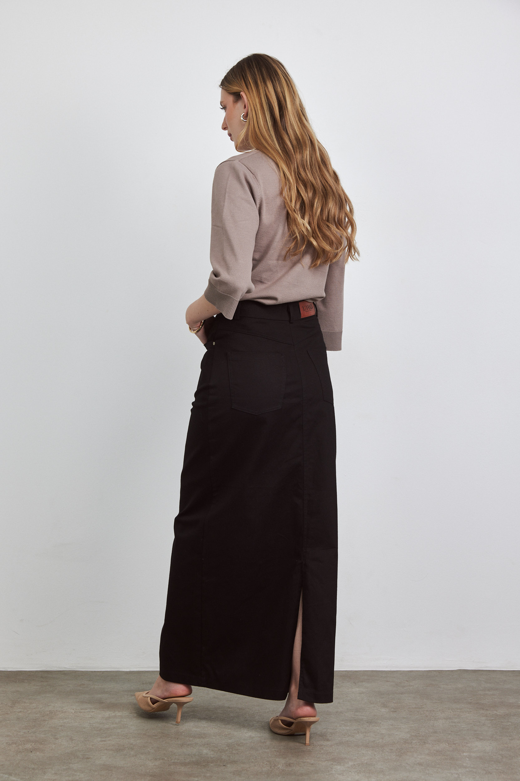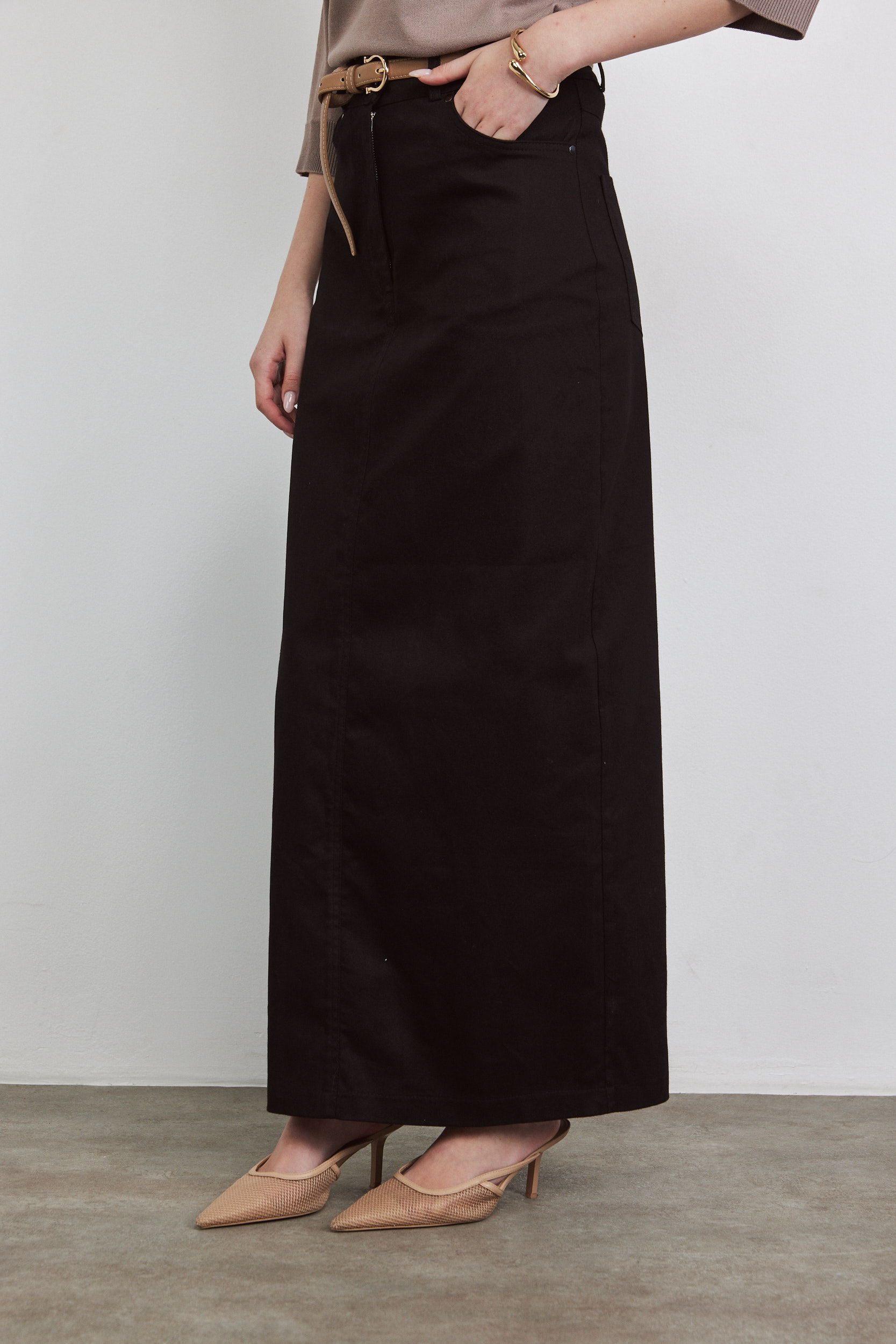 חצאית מקסי עם מראה ג’ינסי. שסע מאחורה (עד מתחת לברך).