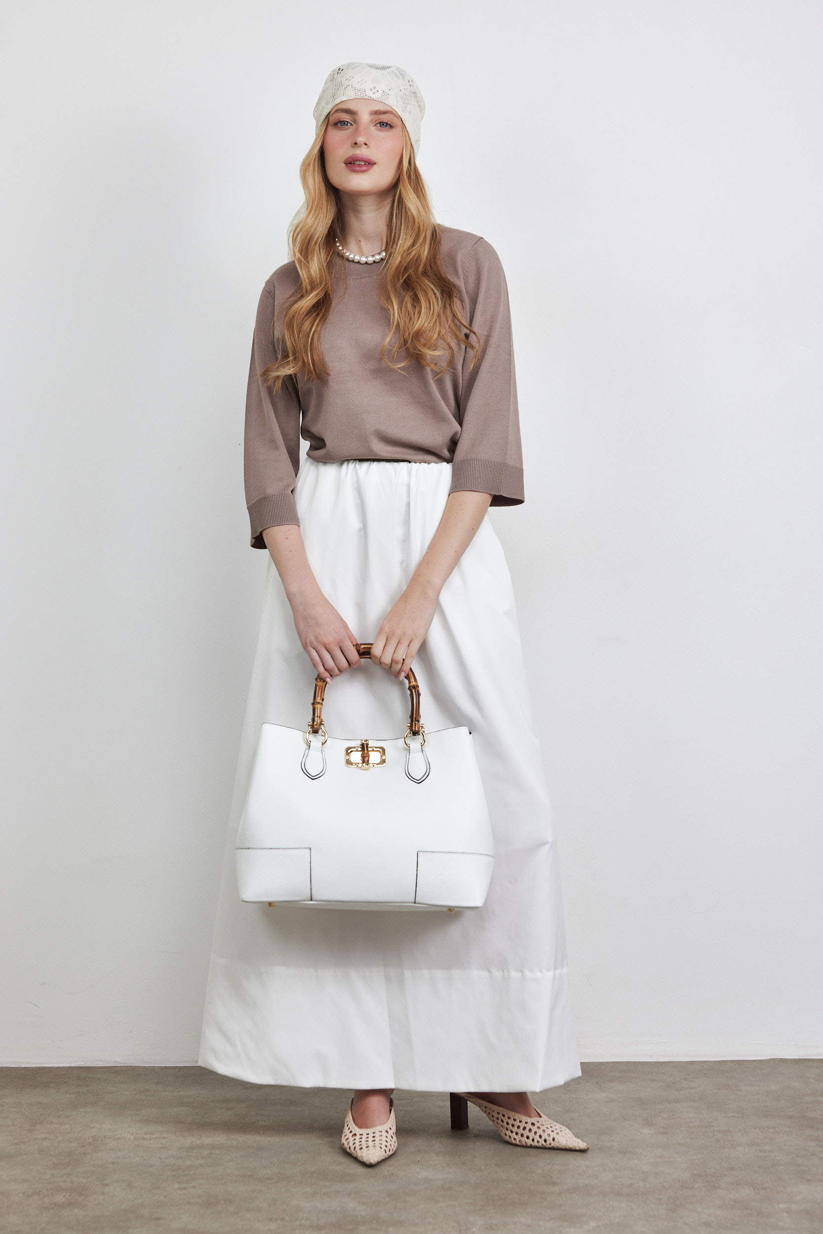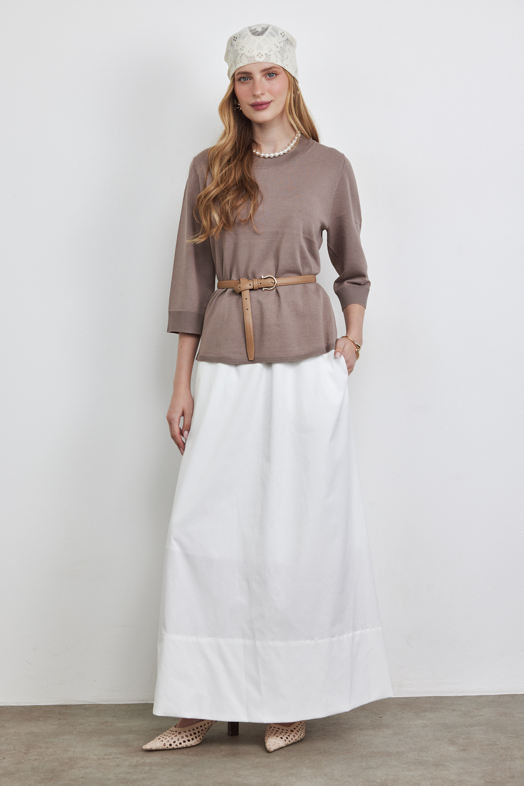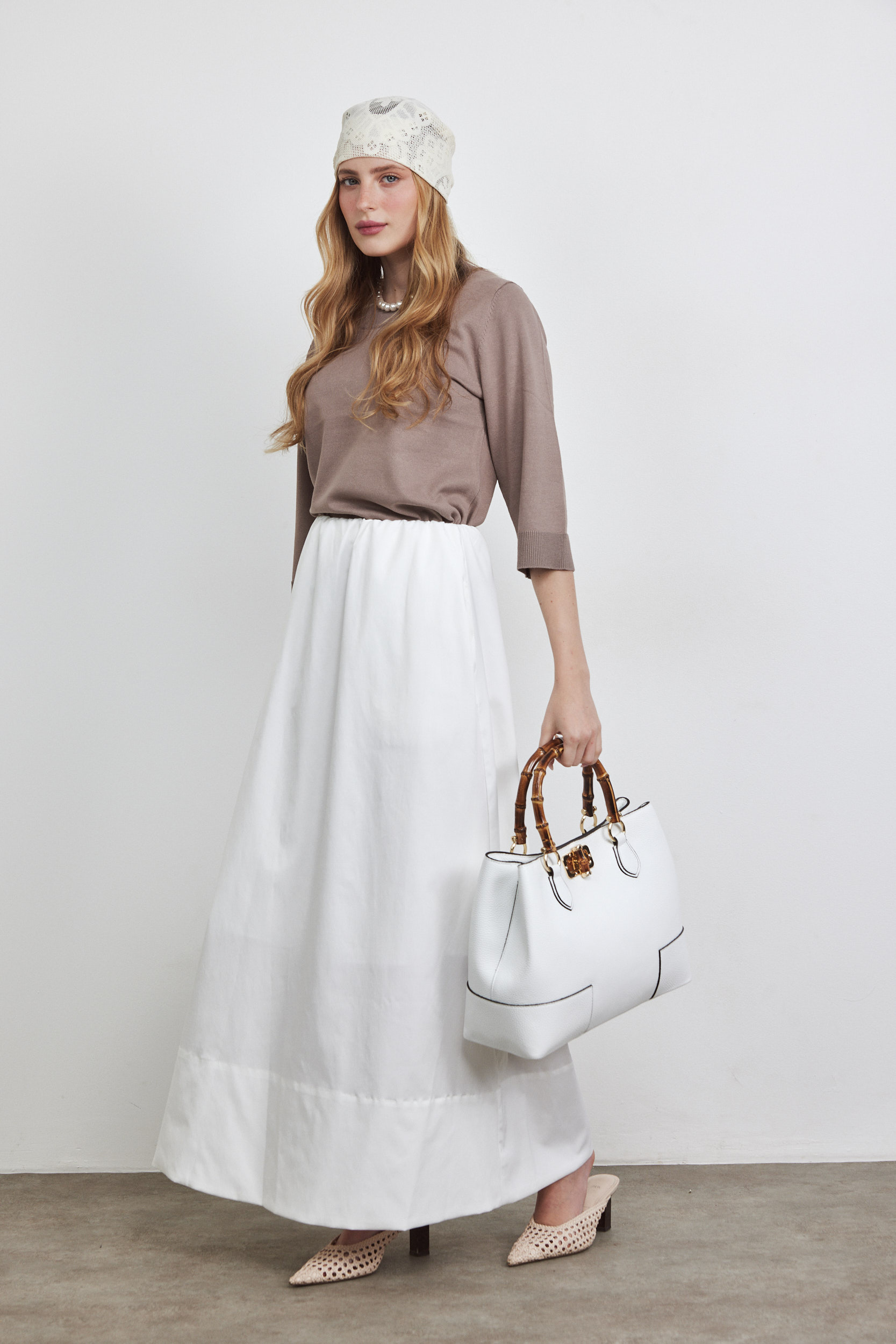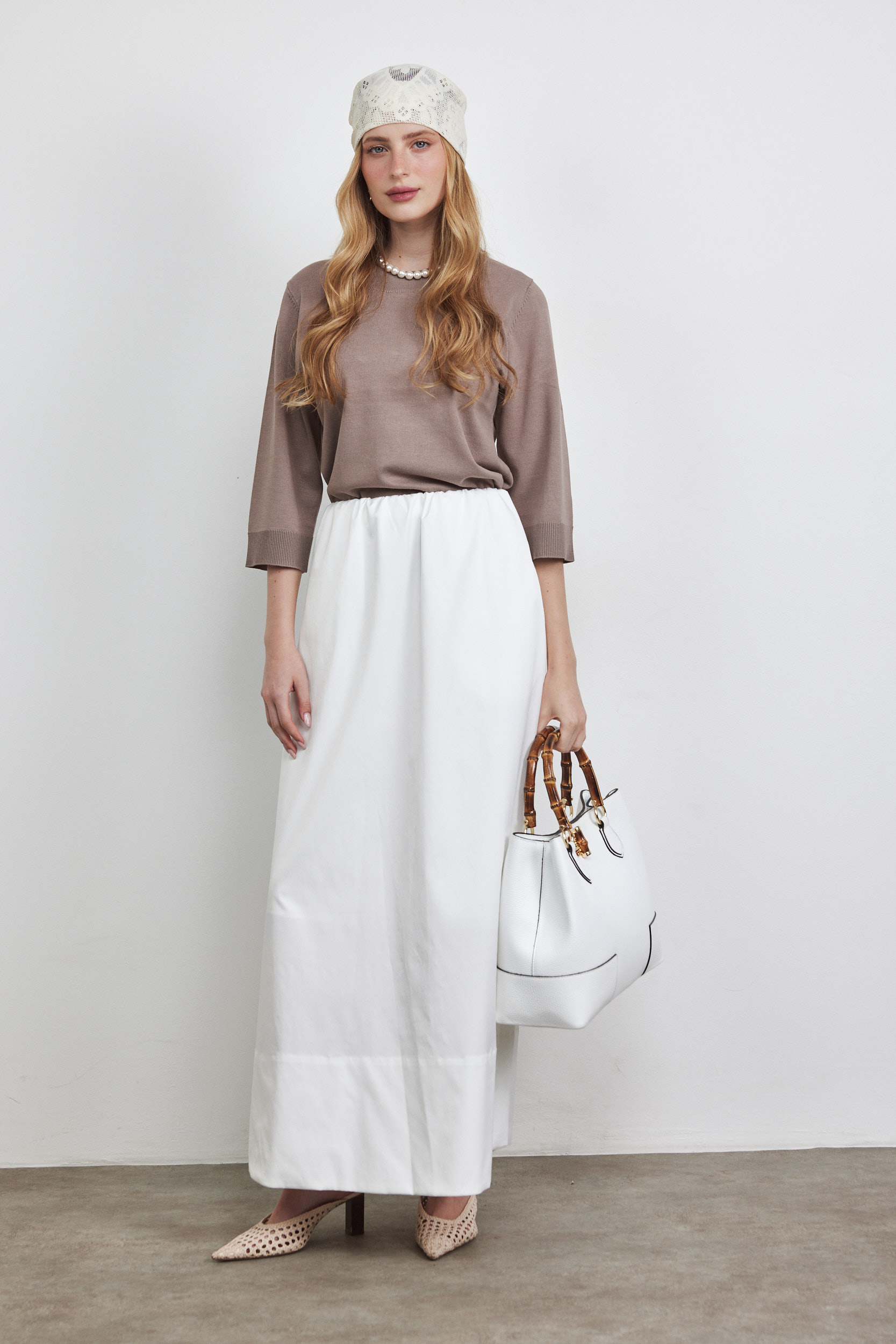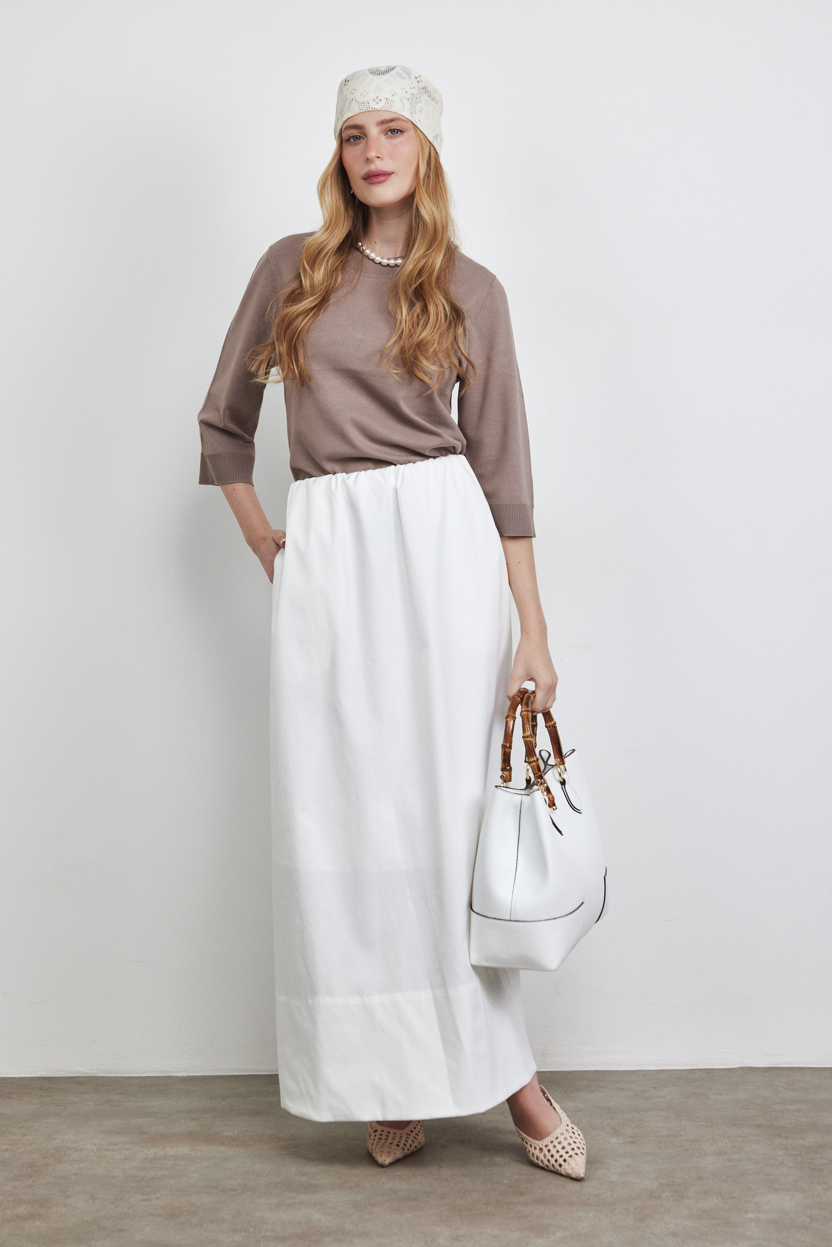חצאית מקסי עם גומי לבנה