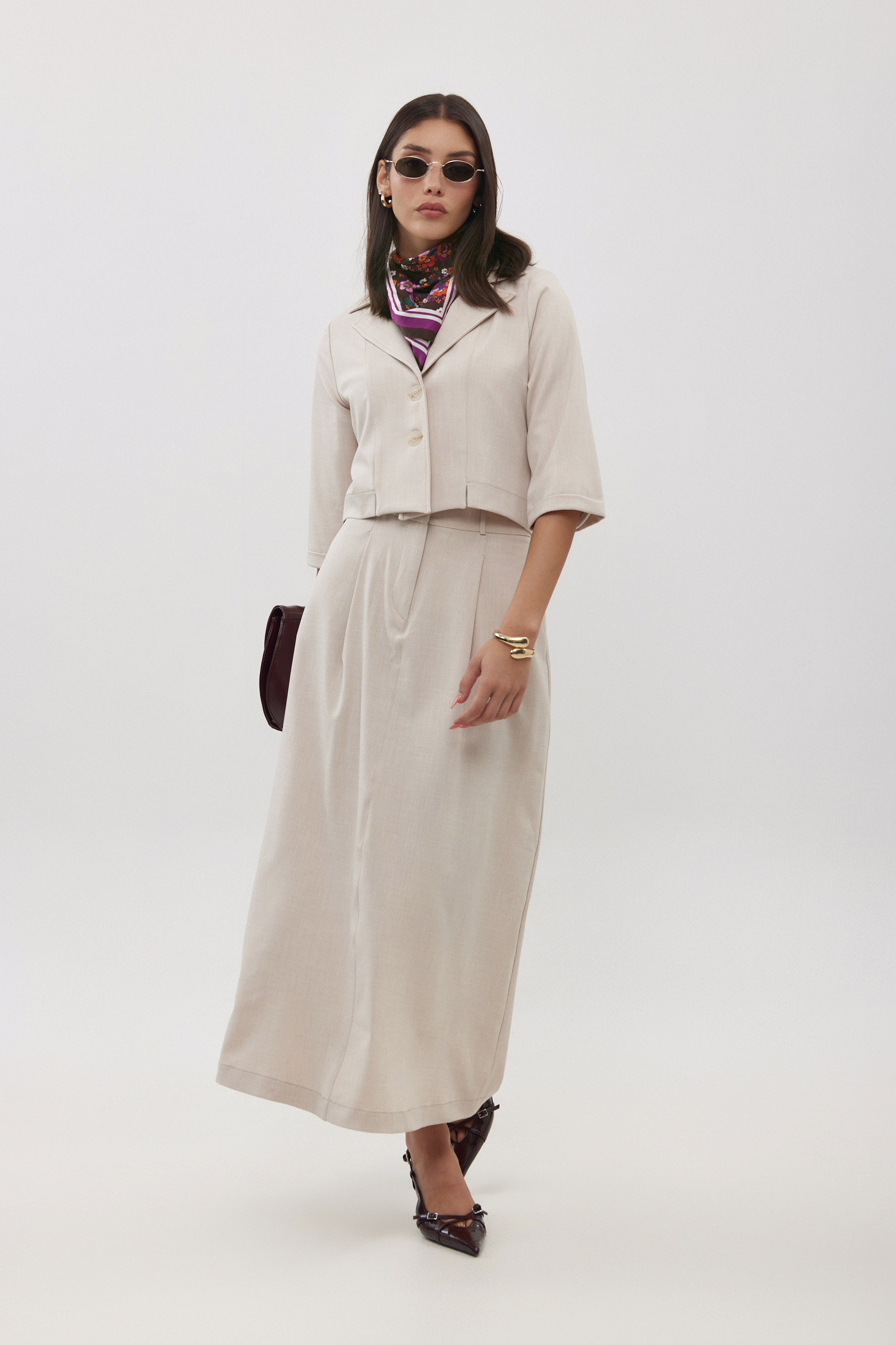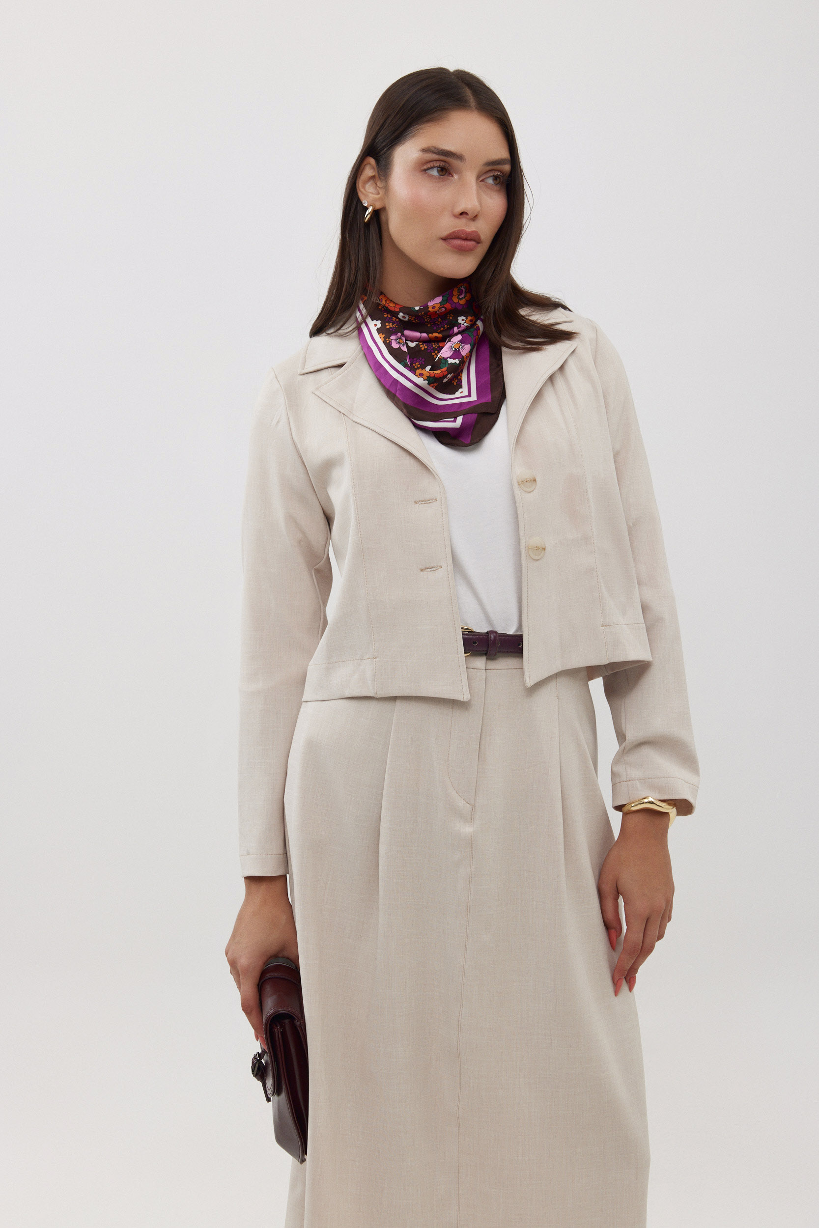 ניתן להשלים את הלוק עם ג’קט פשתן תואם שמגיע בשרוול קצר או ארוך.