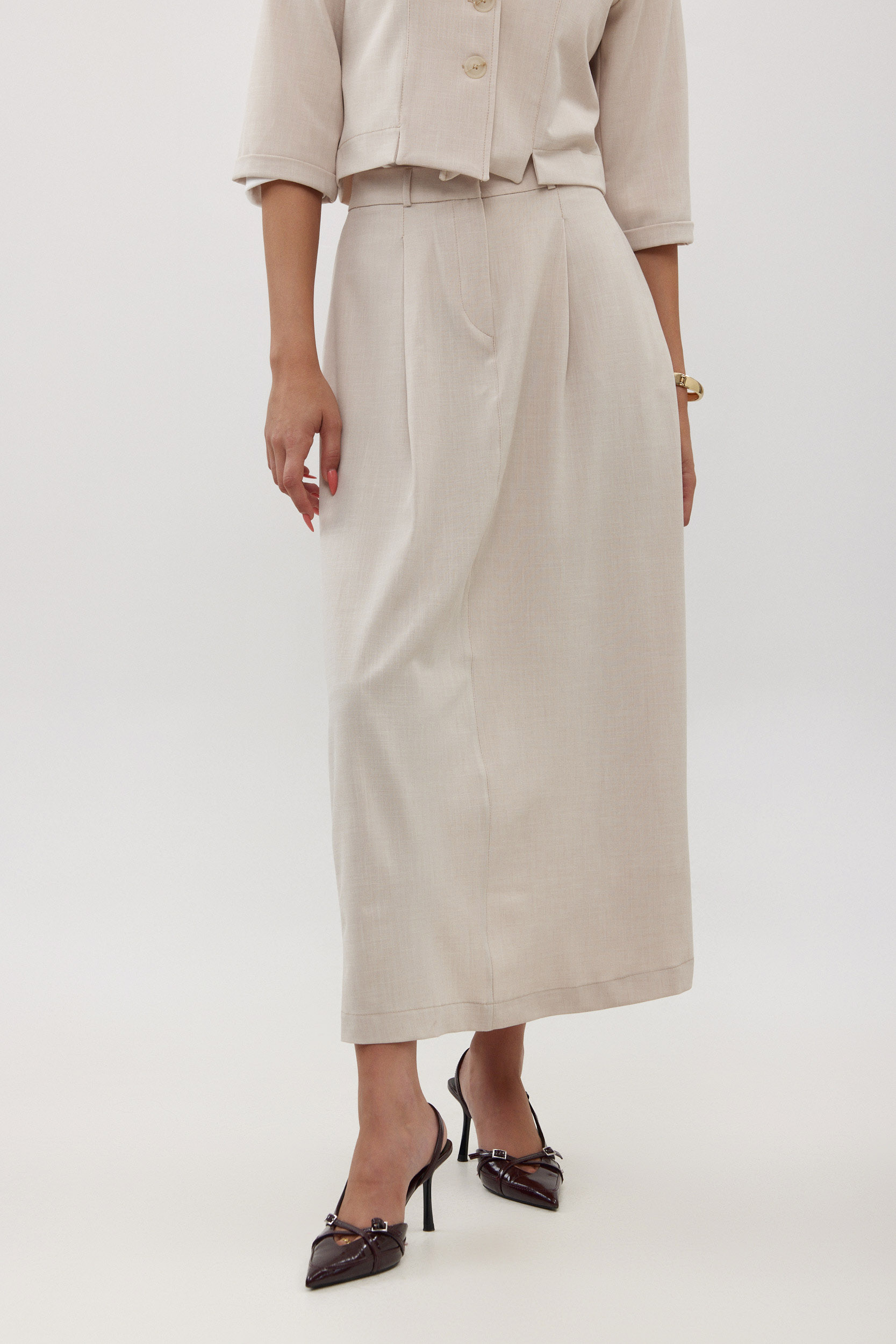 חצאית מקסי פשתן מחוייטת ויהפייפייה. מגיעה כחליפה מהפנטת !!